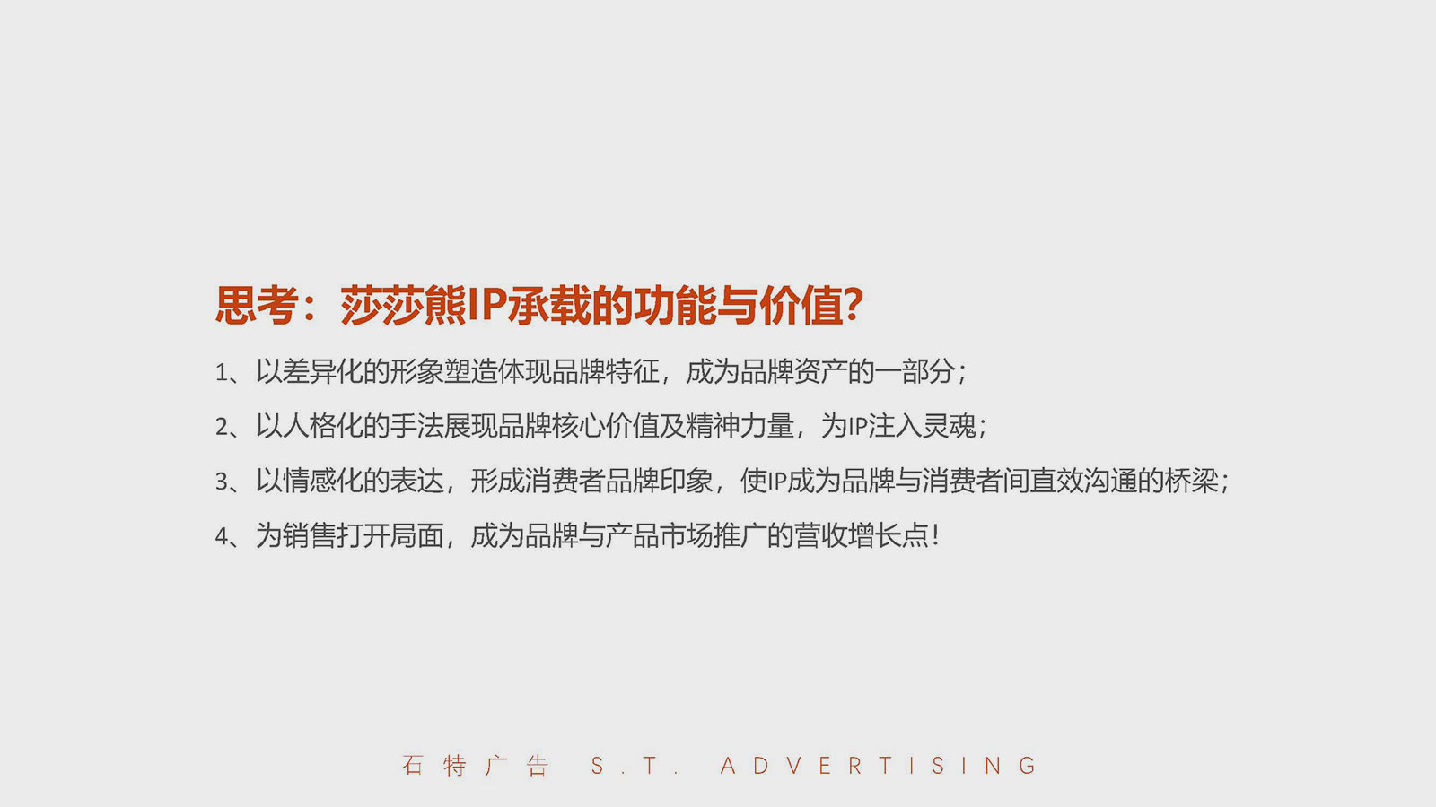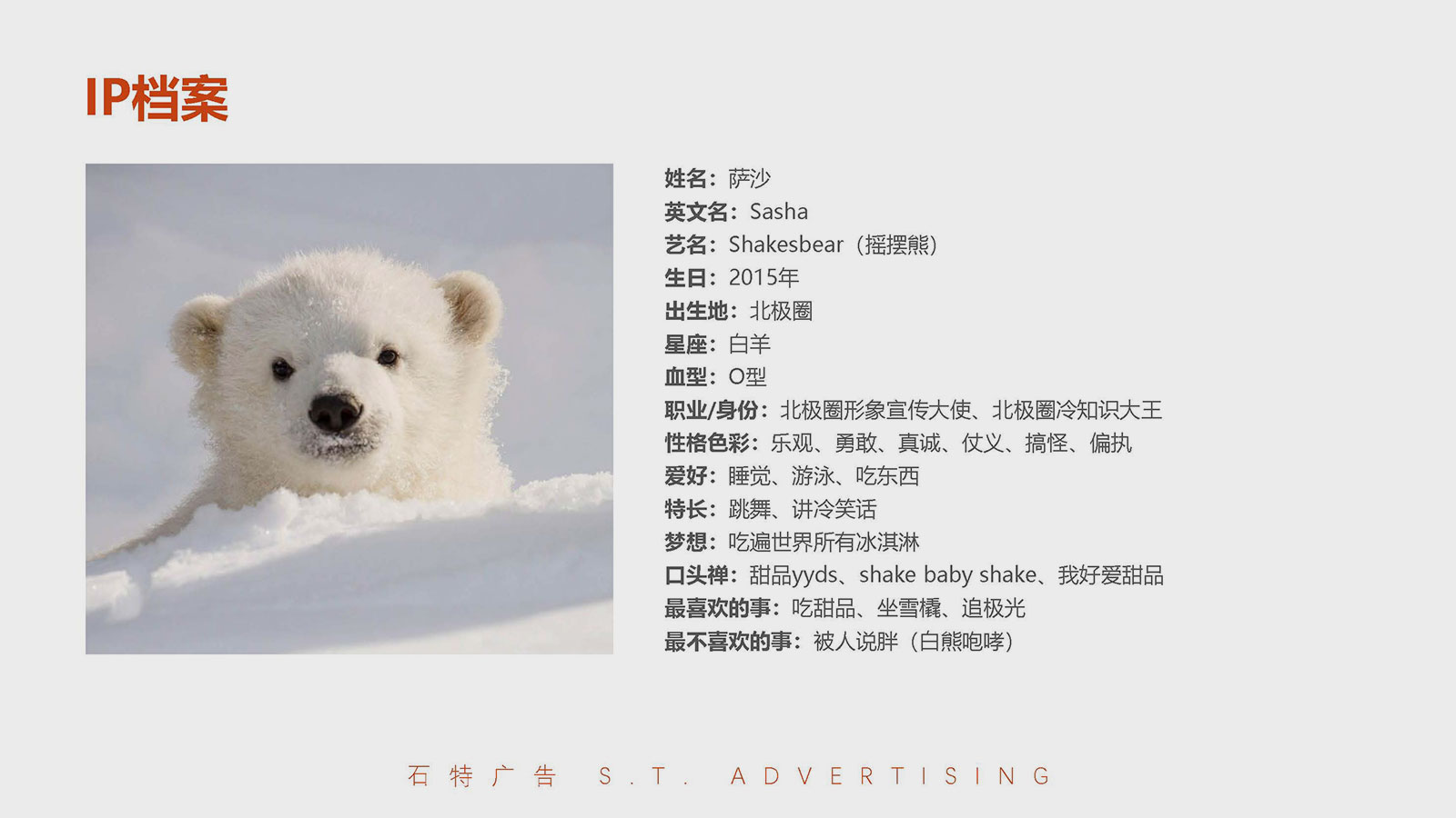 通過對(duì)兒童冰淇淋市場(chǎng)的核心洞察及人群定位,我們將目標(biāo)群體鎖定在00后及10后。透過對(duì)企業(yè)及品牌的自我審視,基于Z世代消費(fèi)洞察以及80/90年輕一代父母的消費(fèi)選擇,我們賦予莎莎熊品牌“安全、新趣、快樂”的基因,基于品牌的核心定位,展開莎莎熊品牌文化、內(nèi)容、形象、包裝的策劃設(shè)計(jì)之路。我們以年輕、快樂、新潮的logo字體設(shè)計(jì)與色彩組合形成品牌獨(dú)特的視覺記憶點(diǎn);我們以北極熊為原型,創(chuàng)作莎莎熊專屬的IP形象——Shakesbear(搖擺熊),并賦予其健全的人格、動(dòng)人的故事、歡快的動(dòng)作,力圖跟大小朋友們打成一片;產(chǎn)品策劃部分,我們提出“純奶源,少添加”、“小分量,更健康”的產(chǎn)品核心定位,并將品牌形象色彩及風(fēng)格淋漓盡致地展現(xiàn)到包裝上。新消費(fèi)升級(jí)時(shí)代,冰淇淋市場(chǎng)之爭(zhēng)愈發(fā)激烈,精準(zhǔn)的品牌定位、創(chuàng)意的品牌形象、豐富的內(nèi)容傳播將是莎莎熊品牌成功開啟市場(chǎng)的三把密鑰。新領(lǐng)域、新市場(chǎng)、新賽道,石特助力新勢(shì)力快速啟動(dòng),全力為新品牌保駕護(hù)航!