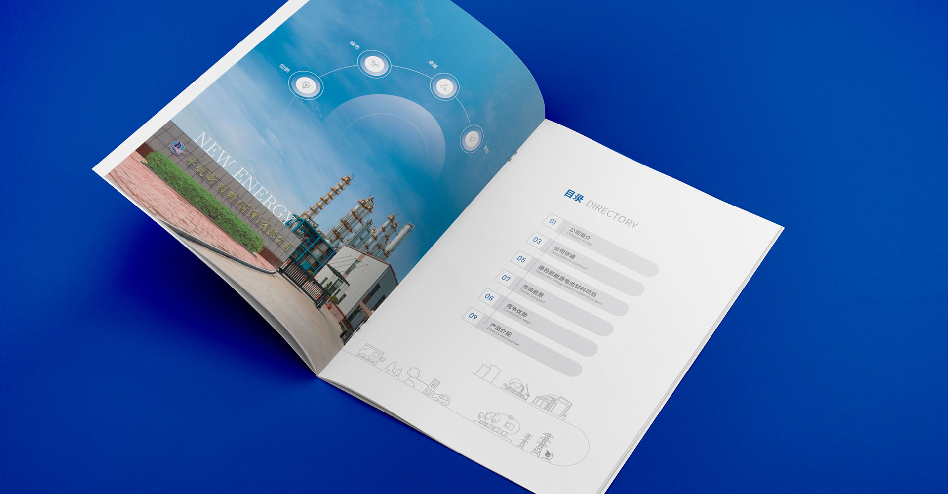 我們將宣傳冊(cè)分為公司簡(jiǎn)介、公司環(huán)境、綠色新能源電池材料項(xiàng)目、市場(chǎng)前景、競(jìng)爭(zhēng)優(yōu)勢(shì)以及產(chǎn)品介紹等六個(gè)板塊。公司簡(jiǎn)介及環(huán)境讓受眾對(duì)企業(yè)有一個(gè)基本的認(rèn)識(shí),重點(diǎn)介紹綠色新能源電池材料項(xiàng)目,并對(duì)市場(chǎng)前景、競(jìng)爭(zhēng)優(yōu)勢(shì)進(jìn)行分析,幫助受眾梳理企業(yè)強(qiáng)勢(shì)之處,以體現(xiàn)卓航新材料的專業(yè)性和領(lǐng)先性,展示產(chǎn)品時(shí)圖文結(jié)合,配合圖表,信息分明。