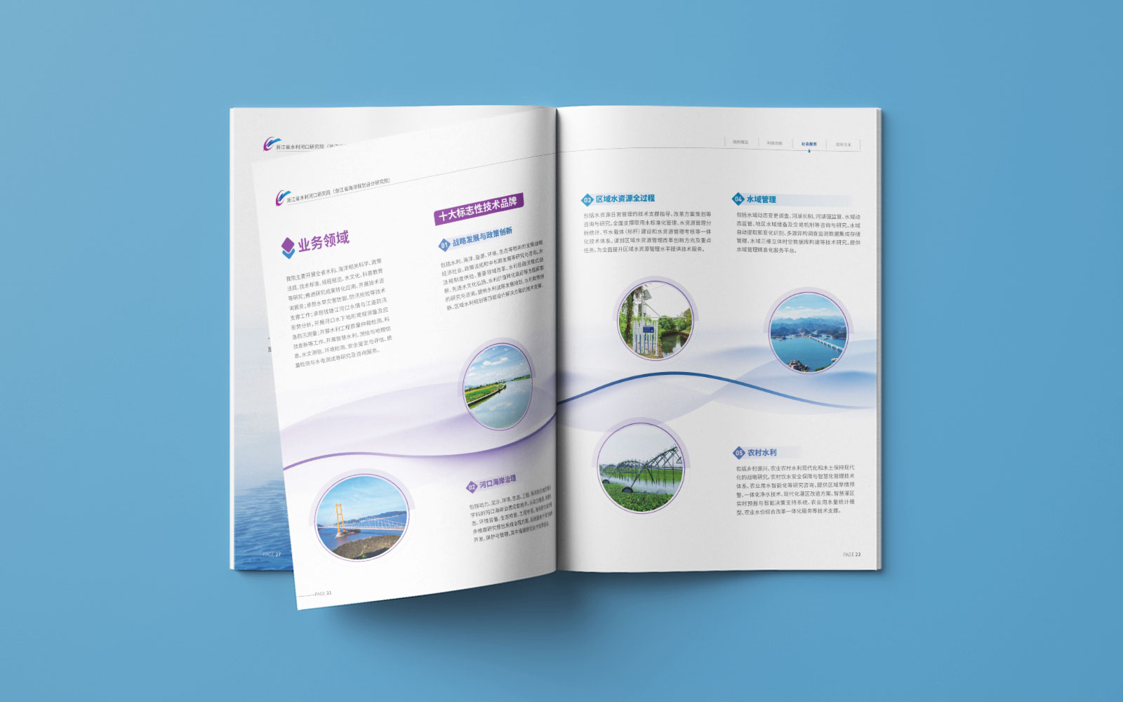 3、整本宣傳冊從內容到形式都精心打磨設計,不僅能夠有效地向外界介紹浙江省水利河口研究院這一機構及其工作內容,同時也能夠增強公眾對于水利事業發展重要性以及公益服務在經濟社會發展中的重要性。