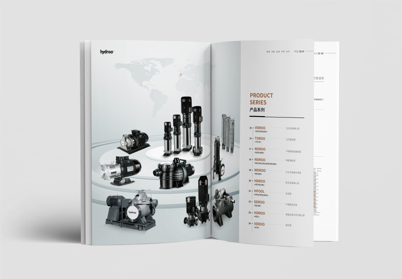 在溝通中,我們了解到浩卓總部位于西班牙巴塞羅那,運(yùn)營(yíng)分部設(shè)在中國(guó)杭州,為更好的展示浩卓企業(yè)綜合實(shí)力,在畫(huà)冊(cè)的設(shè)計(jì)上,以圖文結(jié)合的形式先對(duì)企業(yè)的基本情況進(jìn)行介紹,之后以表格、數(shù)據(jù),細(xì)節(jié)圖對(duì)各類(lèi)產(chǎn)品進(jìn)行闡述,便于受眾快速了解產(chǎn)品參數(shù)及規(guī)格,最后展示浩卓泵業(yè)的經(jīng)典案例,凸顯企業(yè)突出的業(yè)績(jī)。另外,對(duì)畫(huà)冊(cè)的封面做了創(chuàng)意設(shè)計(jì),其主畫(huà)面是一個(gè)地球,分為上下兩個(gè)部分,上部分以線稿的流程圖表現(xiàn)出的一站式解決方案;下部分則是半個(gè)地球,體現(xiàn)企業(yè)致力為全球提供各類(lèi)高端泵產(chǎn)品和泵解決方案。