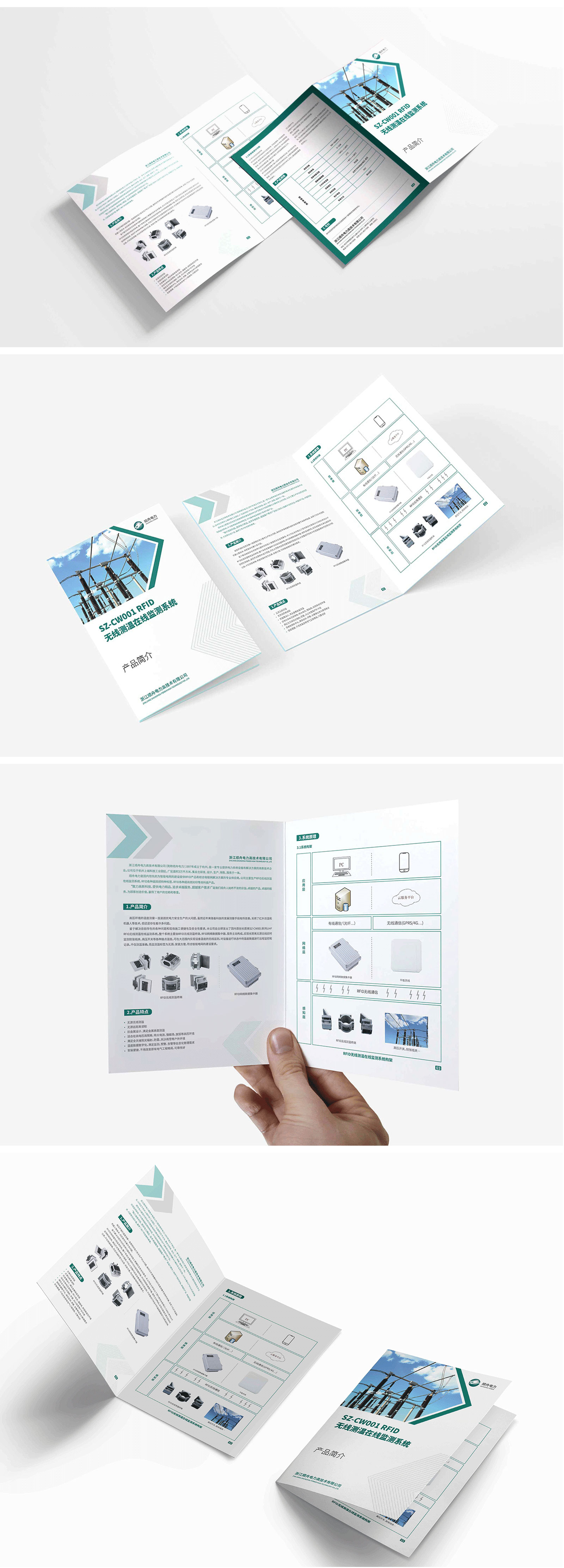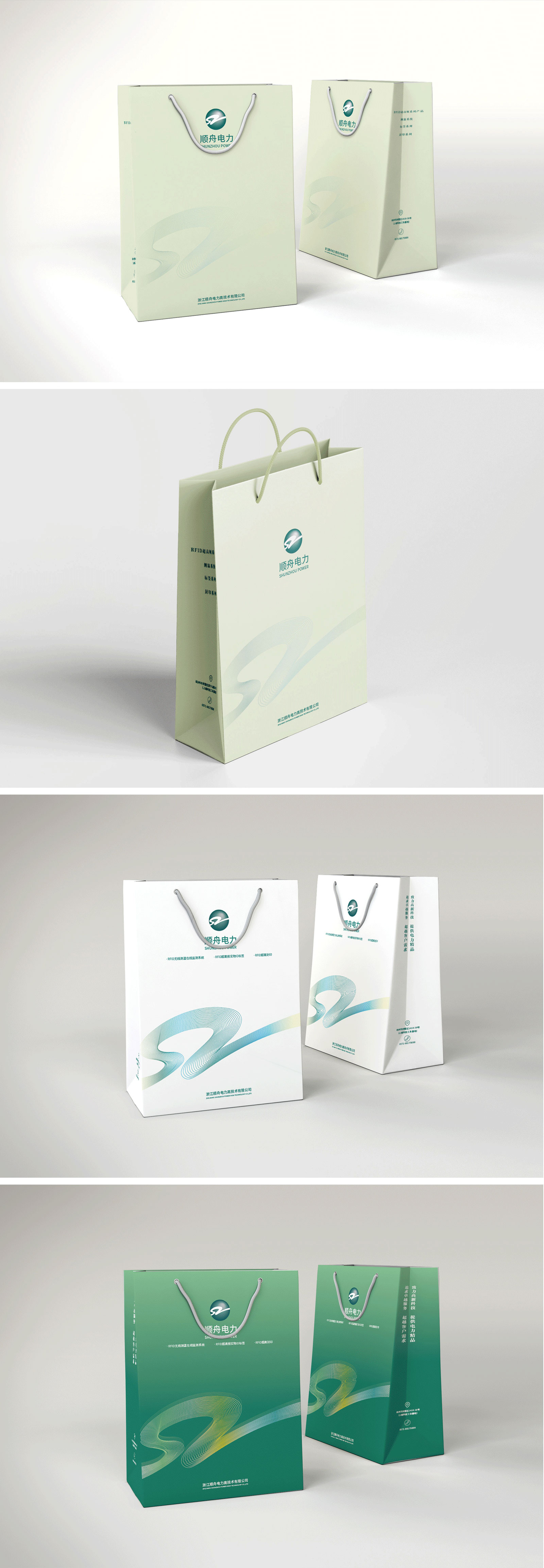 手提袋具有流動(dòng)性強(qiáng)、宣傳性強(qiáng)等優(yōu)點(diǎn),對(duì)企業(yè)品牌形象的宣傳有一定的促進(jìn)作用。基于此,石特對(duì)此次的設(shè)計(jì)任務(wù)提出了新的想法:手提袋在設(shè)計(jì)時(shí),其主畫(huà)面以公司的logo與企業(yè)名稱為主,logo以漸變色的線條構(gòu)成,畫(huà)面干凈簡(jiǎn)潔,在加深受眾對(duì)公司印象的同時(shí)也有利于獲得更好的宣傳效果;在色彩選擇上,選取淡綠色為主色調(diào),與企業(yè)的標(biāo)準(zhǔn)色保持一致,宣傳更具統(tǒng)一性。此外,石特還對(duì)順舟電力產(chǎn)品折頁(yè)進(jìn)行了設(shè)計(jì),獲得了客戶的認(rèn)可。