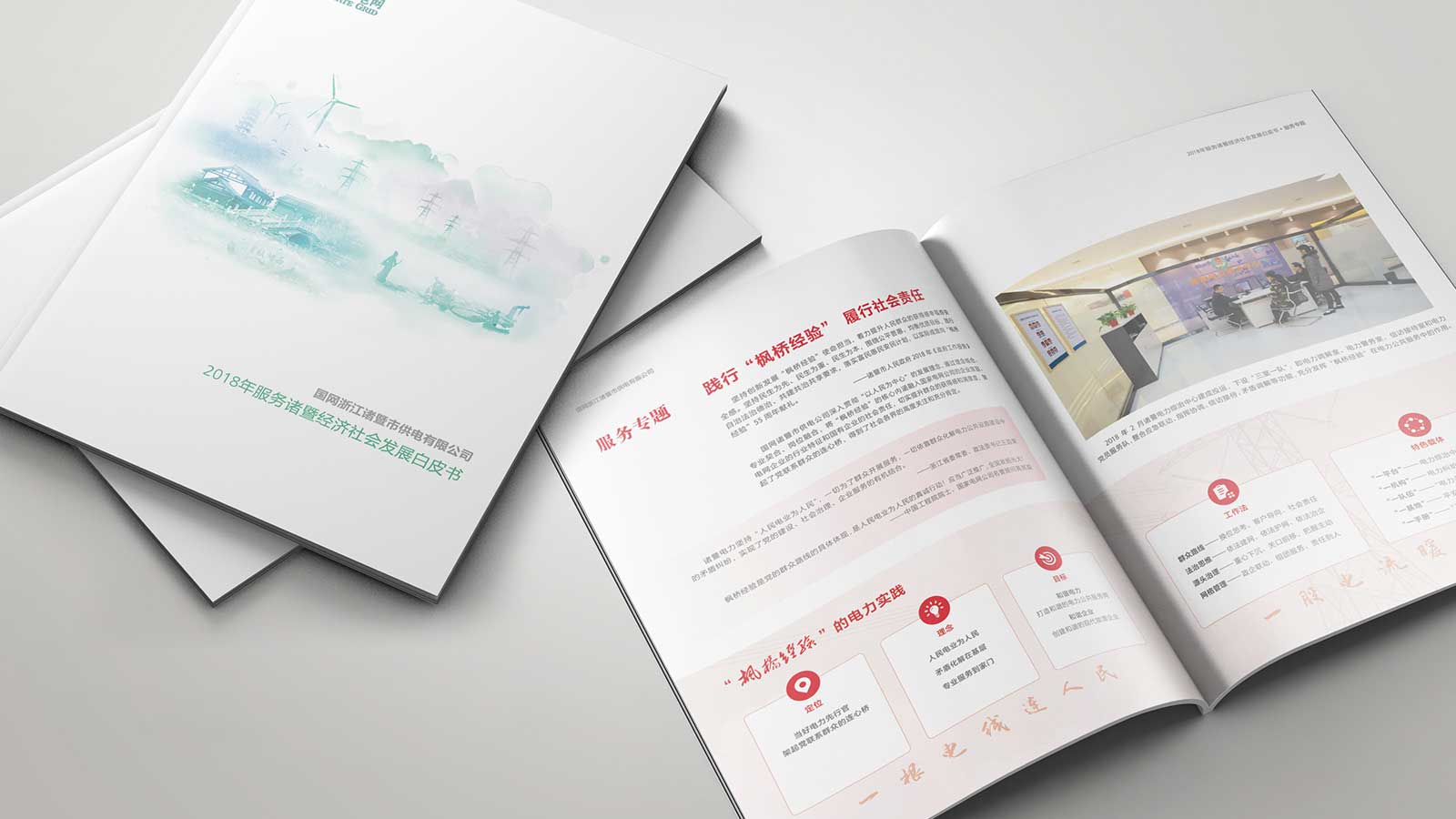 白皮書策劃設(shè)計(jì)共分認(rèn)識(shí)現(xiàn)代電網(wǎng)、總經(jīng)理致辭、公司概況、服務(wù)實(shí)踐、展望2015五個(gè)篇章。圍繞服務(wù)諸暨經(jīng)濟(jì)社會(huì)發(fā)展目標(biāo),從電和現(xiàn)代電網(wǎng)的屬性入手,系統(tǒng)展示了公司履行經(jīng)濟(jì)責(zé)任、政治責(zé)任和社會(huì)責(zé)任的具體行動(dòng)。