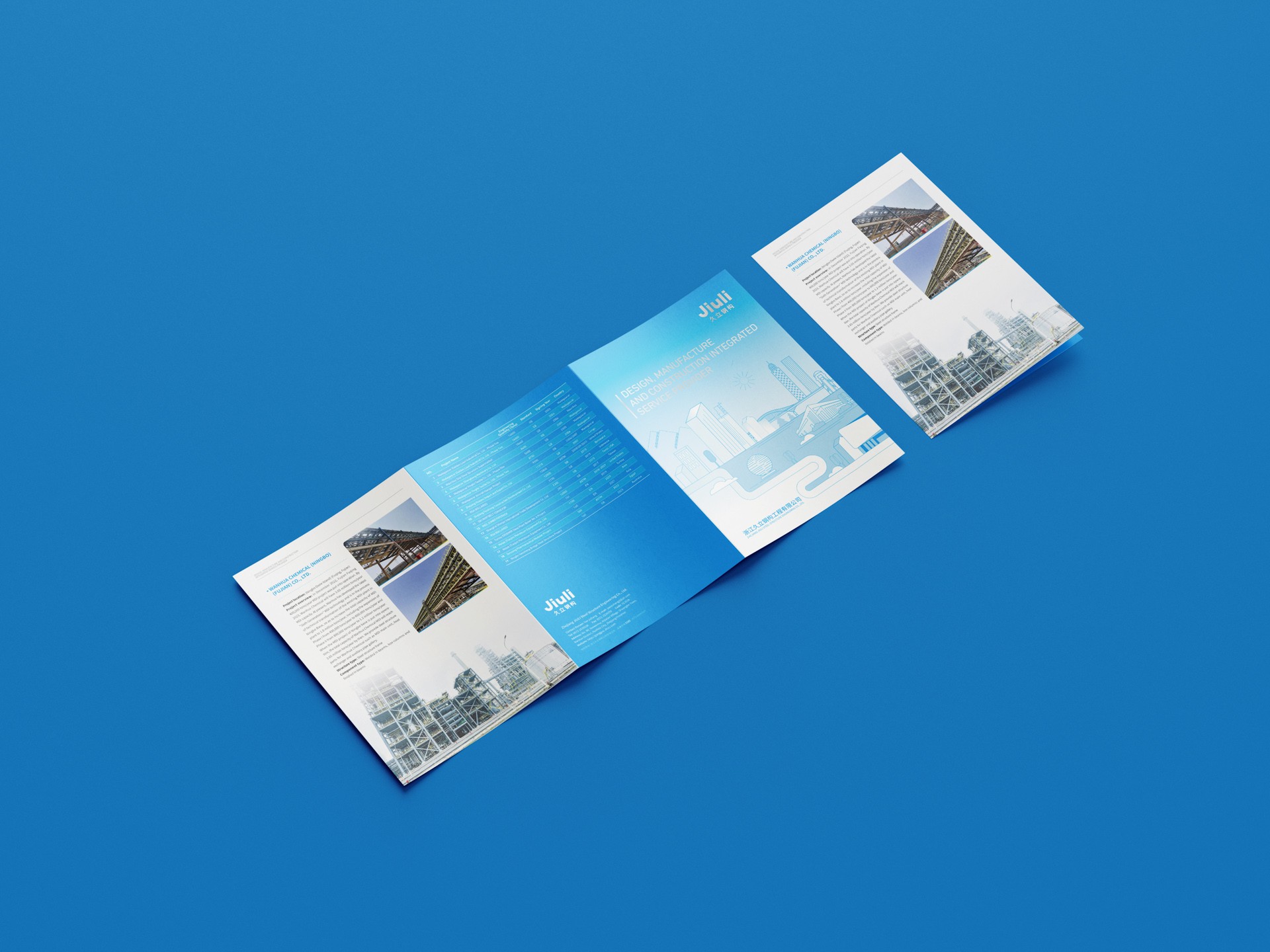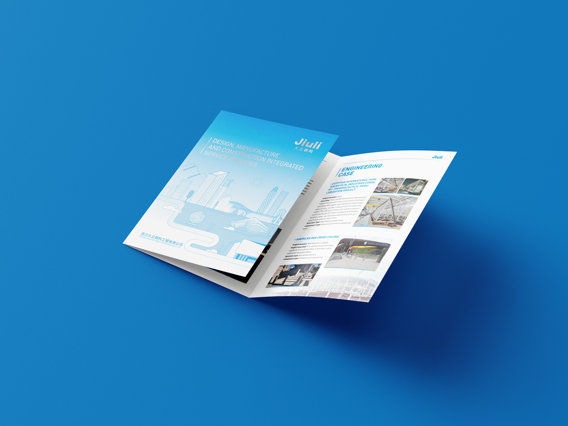 一、設計理念與目標:本次鋼結構公司宣傳三折頁設計,我們秉持專業、創新和實用的設計理念,旨在通過獨特的視覺呈現和精準的信息傳達,充分展示公司的實力、技術水平和業務范圍,樹立公司品牌形象,吸引潛在客戶的關注。