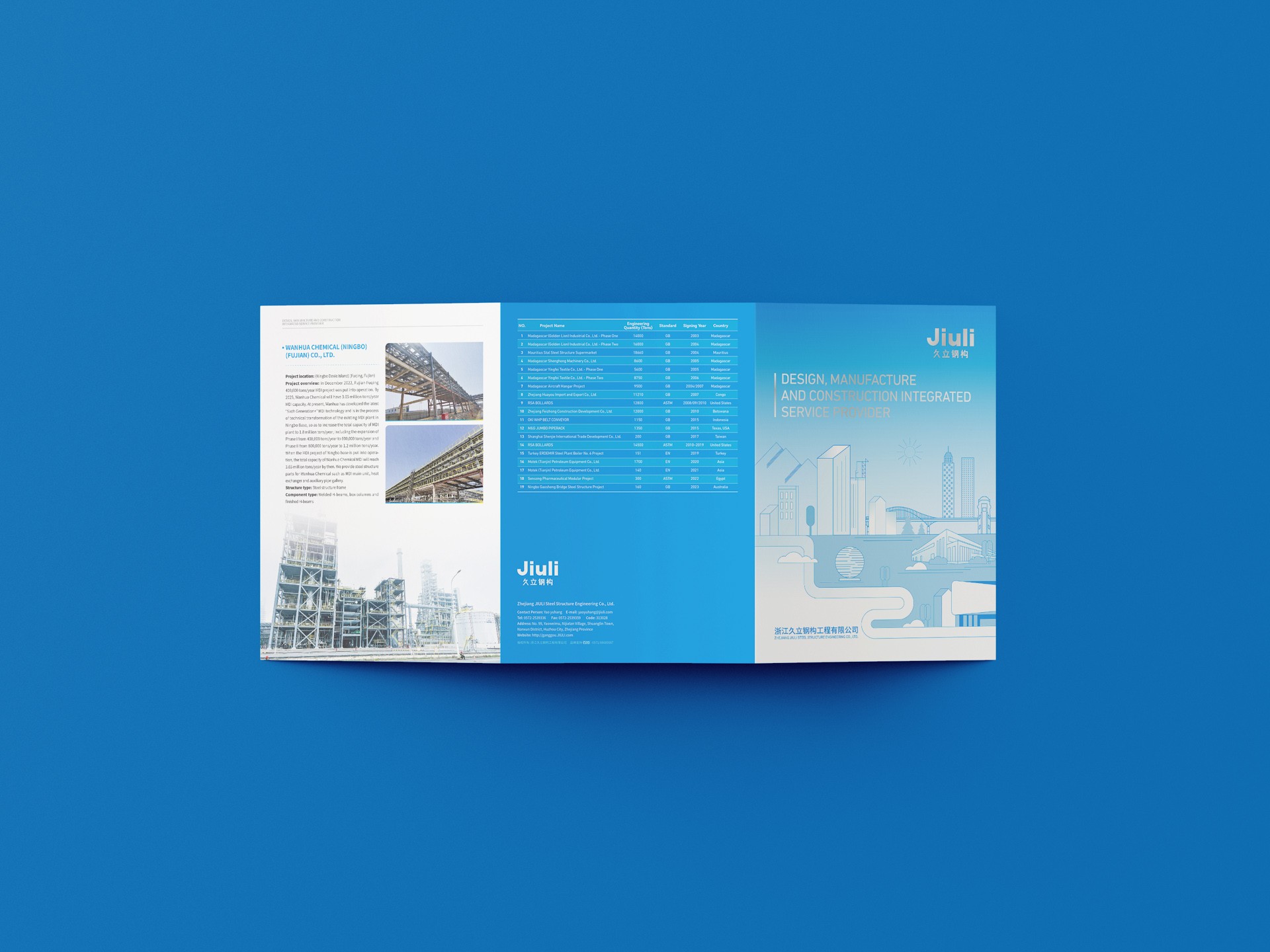四、內容策劃與呈現:宣傳三折頁的內容策劃圍繞公司的核心優勢、業務范圍和成功案例展開。通過精煉的文字和生動的圖片,展示公司在鋼結構設計、制造、安裝等方面的專業能力和豐富經驗。同時,結合具體的項目案例,展示公司在各個領域的應用成果,增強客戶的信任感和認同感。