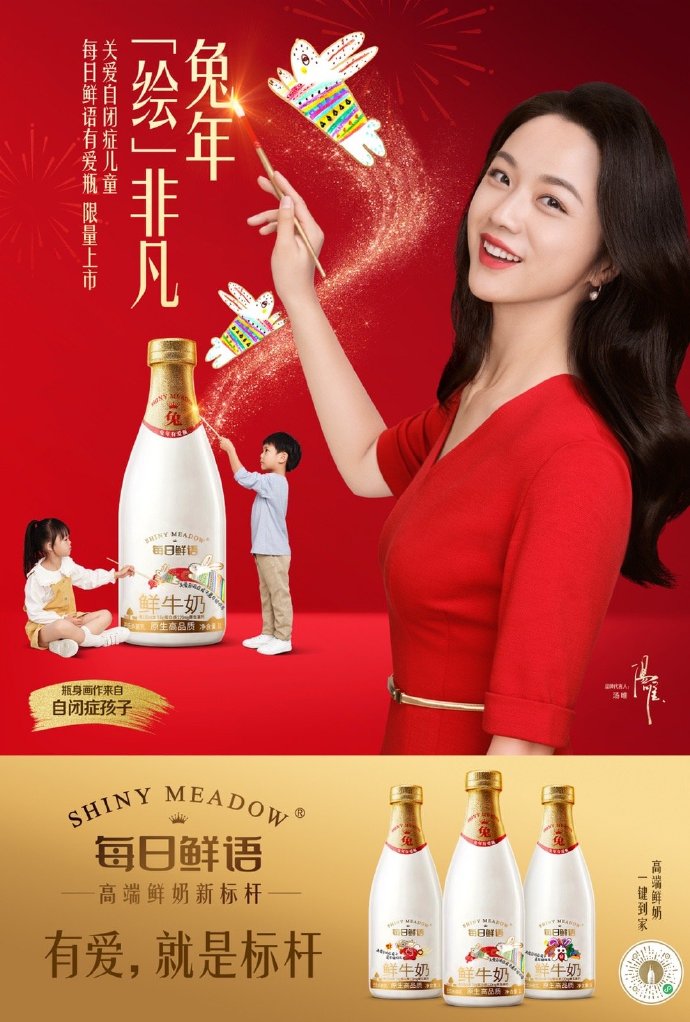 每日鮮語的議題很明顯——選擇公益行動(dòng),在這場自閉癥孩童關(guān)愛行動(dòng)中,每日鮮語將產(chǎn)品、創(chuàng)意融入其中,向公眾推出“兔年有愛瓶”,有愛的不僅是瓶身的畫作創(chuàng)意、還有展現(xiàn)出來的品牌的價(jià)值觀,“積極有愛”的形象與每日鮮語綁定。