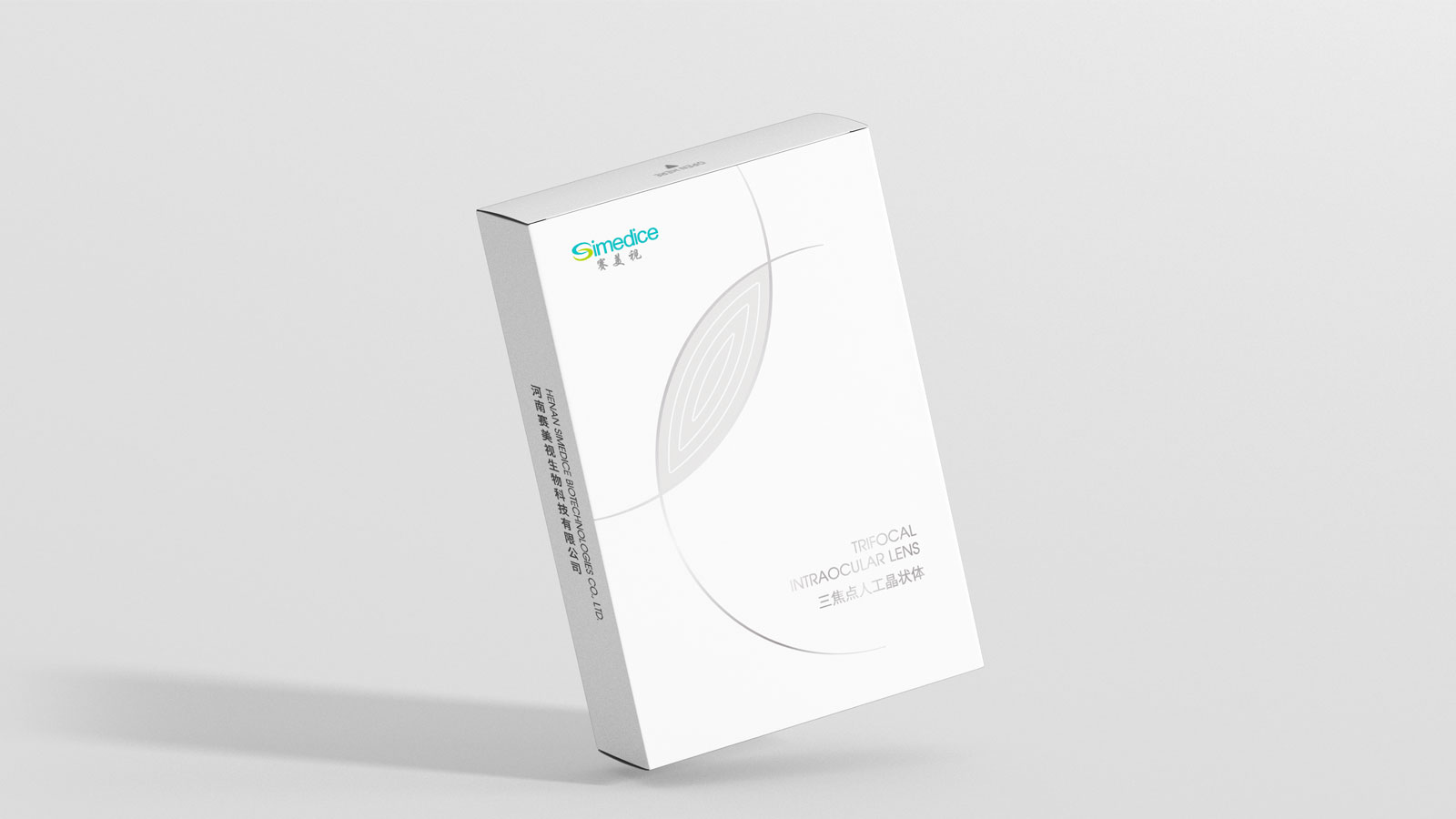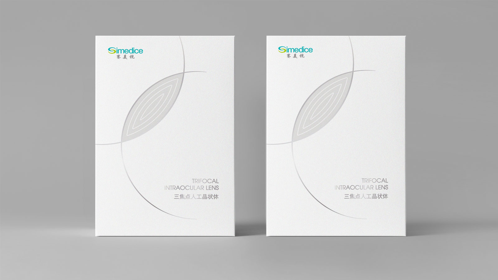這是一款人工晶狀體的包裝設計,石特在了解其具體特點及用途之后,著手進行設計:其主畫面以兩條交匯的線條構成,中間交匯的區域形成一個“眼睛”與產品“晶狀體”契合,同時半弧形相交的“s”與企業logo中的首字母吻合;包裝整體以白色為主、設計簡潔,給人安全感覺,另外,包裝成品還加以燙銀工藝,以此增加包裝質感,盡顯高級。