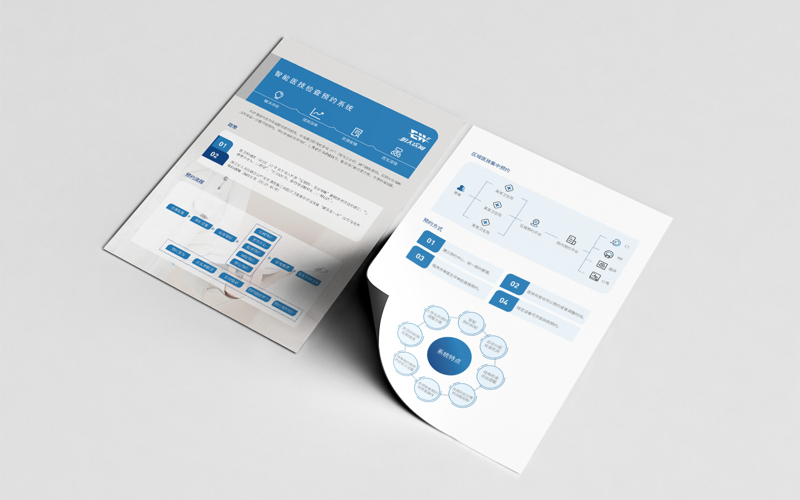 宣傳折頁單頁主要表現(xiàn)一是產(chǎn)品,二是服務(wù),展示我們擁有自主產(chǎn)品以及擁有的特色服務(wù)。重文化,重產(chǎn)品,突出兩個大塊,一塊是公司文化特色優(yōu)勢;一塊是公司產(chǎn)品。突出畫冊的高品位高質(zhì)量。整體采用大方簡潔醫(yī)用藍(lán)色色調(diào),具有選材、專題突出、設(shè)計精美等特點。向消費者宣傳介紹公司,展示公司的企業(yè)規(guī)模。整合最好的產(chǎn)品,不斷研發(fā) 自主產(chǎn)品。