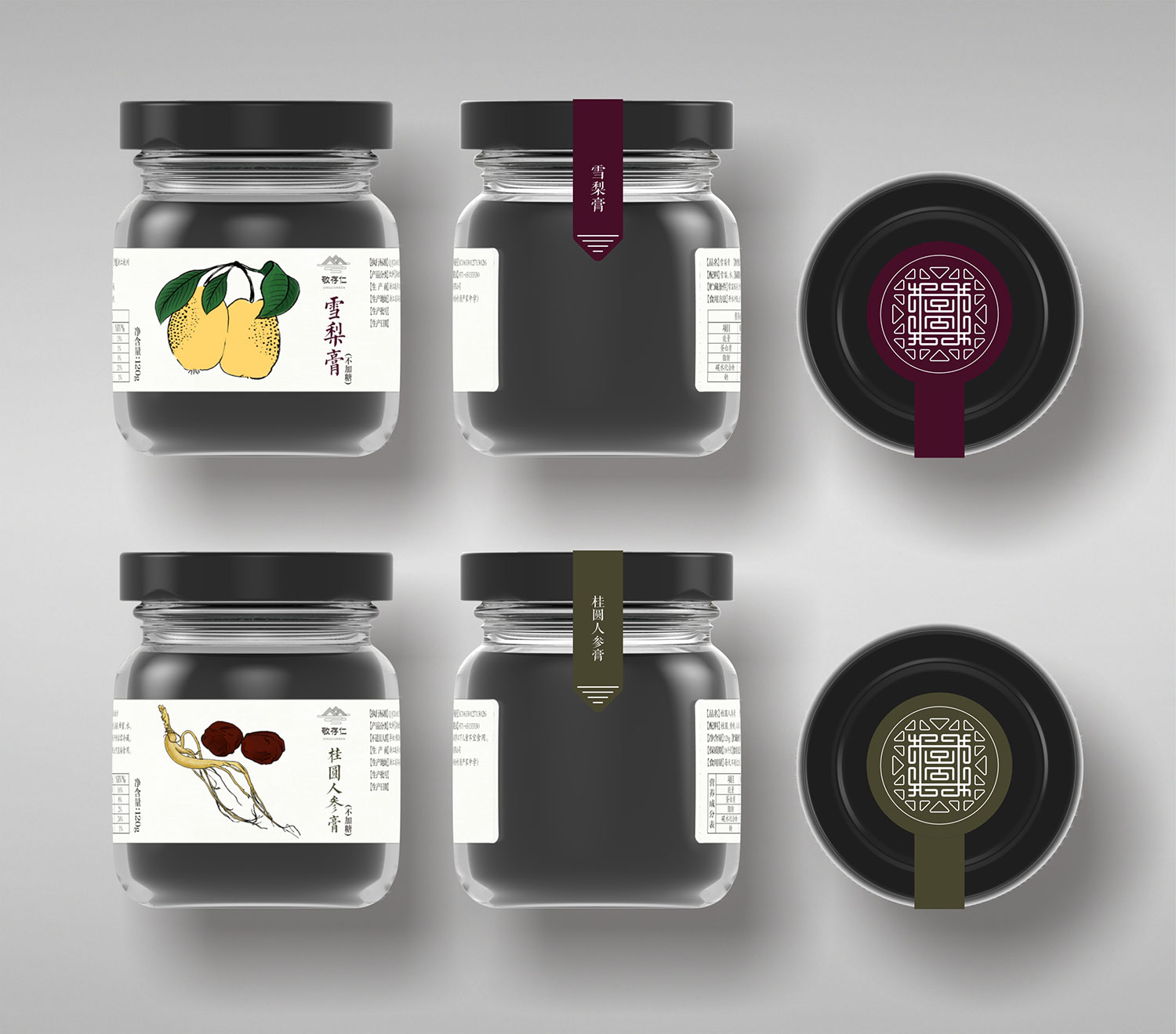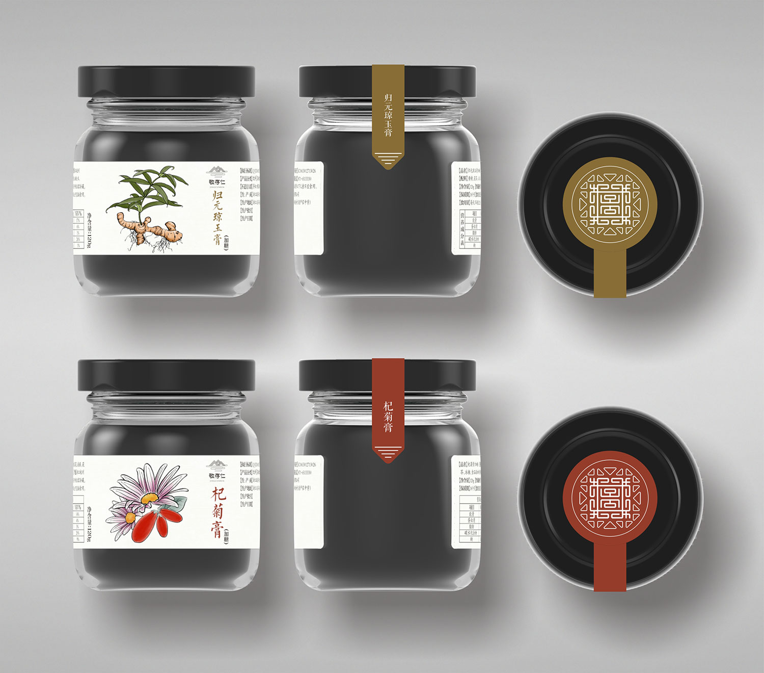 膏方品種類繁多,目前中藥材市場魚龍混雜,導(dǎo)致膏方質(zhì)量良莠不齊。敬存仁利用獨(dú)一無二地理原材料優(yōu)勢打造原生態(tài)無污染系列膏方產(chǎn)品。石特為敬存仁做了全面的品牌形象設(shè)計(jì),統(tǒng)一風(fēng)格,統(tǒng)一品牌形象。在品牌命名上,遵循中國儒家思想“敬業(yè)修身、存為德、仁滿天下”故名為敬存仁。