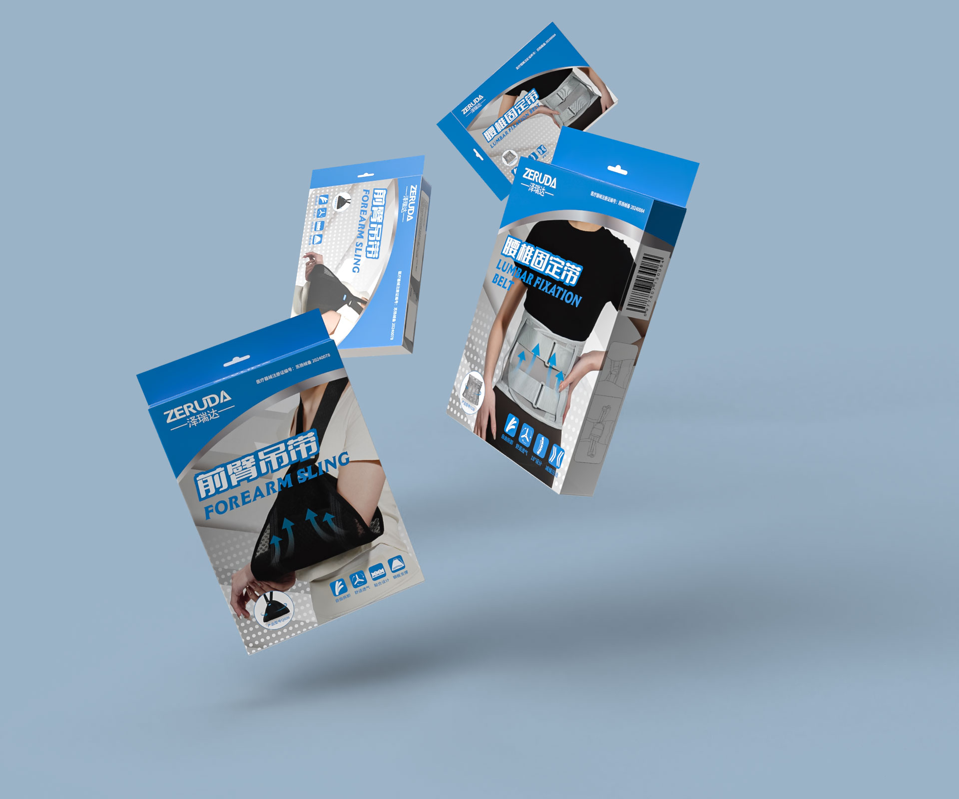 針對前臂吊帶,設計團隊發現不同年齡消費者需求差異巨大。為了給兒童患者帶來驚喜,他們在包裝上繪滿可愛的卡通小動物和醫生形象,用明亮活潑的色彩,將原本冰冷的醫療包裝變成充滿童趣的 “禮物盒”,緩解孩子們對受傷的恐懼。而面對成年患者,包裝則走簡潔大方路線,柔和色調搭配簡約線條,傳遞實用與專業。包裝正面 “貼心呵護,助力康復” 的溫馨提示語,如同一股暖流,溫暖著每一位使用者的心。此外,包裝上詳細的功能示意圖、大字體排版以及附贈的康復指導資料,都彰顯著滿滿的用戶關懷。