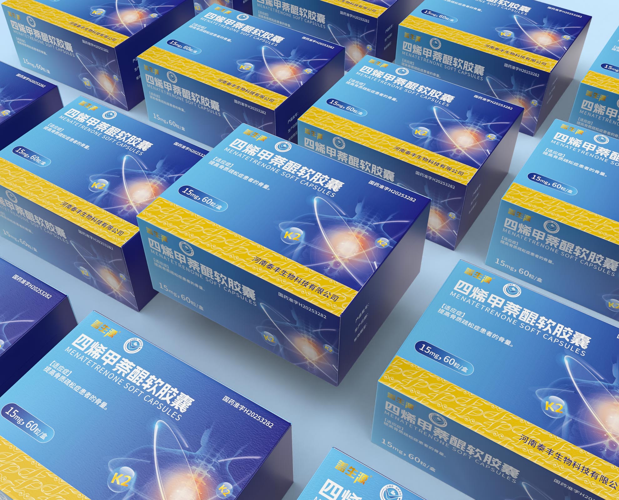四烯甲萘醌軟膠囊作為專注骨骼健康的醫藥產品,在臨床及消費市場需求持續增長。其包裝需精準傳遞 “助力骨骼健康” 的產品價值,同時展現泰豐生物的品牌實力,在滿足醫藥產品合規性、穩定性要求基礎上,通過視覺設計強化產品辨識度與專業感,適配醫藥流通、終端消費等多場景,為醫患溝通、消費者選購提供優質視覺體驗 。